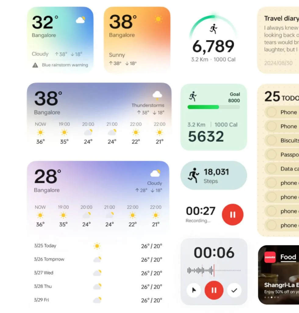 يقدم OxygenOS 15 مجموعة من تحسينات التصميم التي تعزز تجربة المستخدم. يتضمن التحديث الجديد لبطاقات Shelf نظام ألوان نصف ظلي جديد، مما يوفر واجهة أكثر جاذبية وشخصية. كما تم توسيع أحجام البطاقات لتوفير مرونة أكبر في التخصيص، مما يتيح للمستخدمين تعديل تخطيطاتهم حسب تفضيلاتهم.