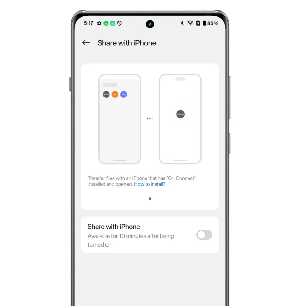 يجعل OxygenOS 15 من السهل أكثر من أي وقت مضى مشاركة الملفات بين أجهزة OnePlus وiPhone. يمكن لمستخدمي OnePlus ببساطة تفعيل ميزة “المشاركة مع iPhone” من إعدادات الجهاز، مما يلغي الحاجة إلى أي تحميلات إضافية.
